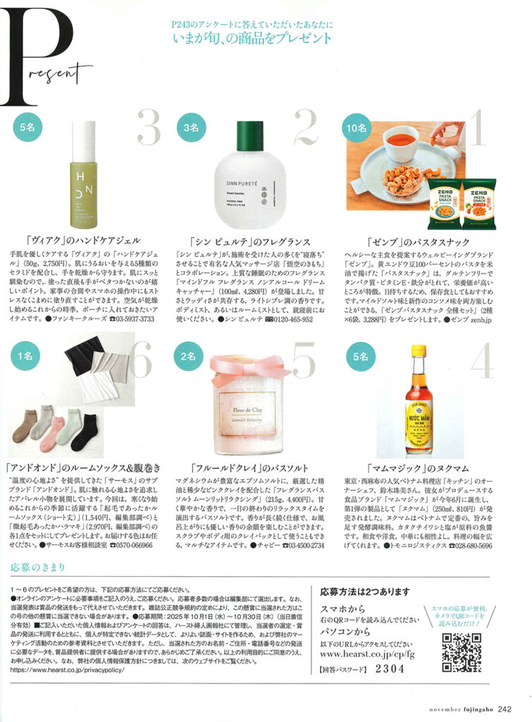 婦人画報 2025年11月号『Present』内でVIEAQ HND CAREGEL(ヴィアク ハンドケアジェル)をご紹介いただきました。