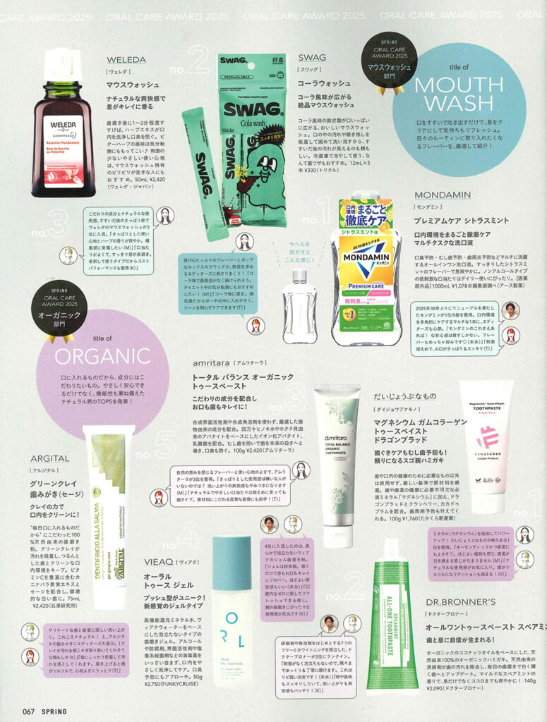 SPRiNG 2026年1月号『オーラルケアアワード2025』内でVIEAQ ORL TOOTHGEL(ヴィアク オーラルトゥースジェル)をご紹介いただきました。